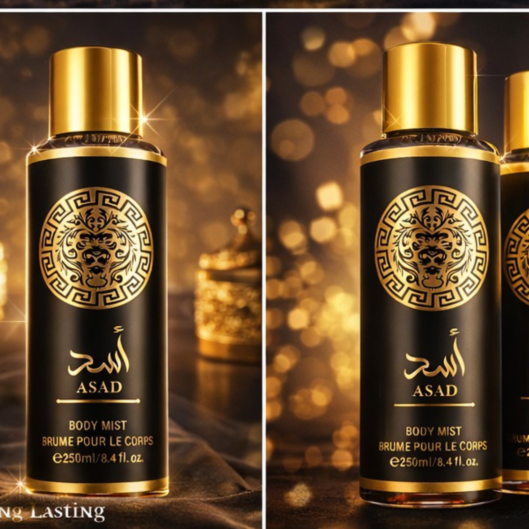 Experience timeless sophistication with ASAD Unisex Body Mist, a luxury fragrance imported directly from Dubai and inspired by the richness of Middle Eastern perfumery. Designed for both men and women, ASAD delivers a bold yet smooth aroma that reflects confidence, elegance, and modern luxury. The fragrance opens with a warm, refined character and gradually settles into a balanced, long-lasting scent trail that feels fresh and captivating throughout the day. Ideal for daily wear as well as evening occasions, ASAD offers an effortless blend of strength and subtle elegance without being overpowering. Presented in a premium black and gold bottle, ASAD embodies exclusivity and style—making it a statement fragrance suitable for every season and every occasion.